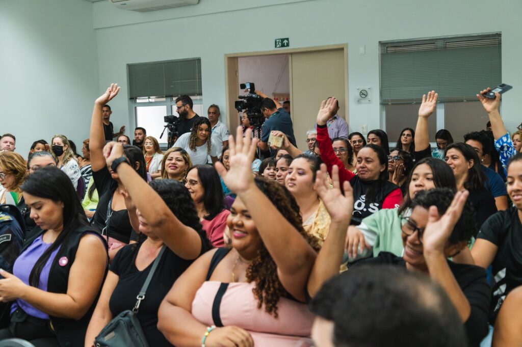 Solenidade de certificação das turmas formadas em parceria com a Secretaria da Mulher do Governo do Ceará | Foto: Laura Guerreiro/Fiec“Nesse caso das mulheres em situação de vulnerabilidade, nós temos todo um trabalho com parceiros para possibilitar que ela chegue até o final do curso, que ela tenha meios de prover para estar no curso, para perseverar. Além disso, a gente as encaminha para as vagas abertas na indústria”, conta Sônia.